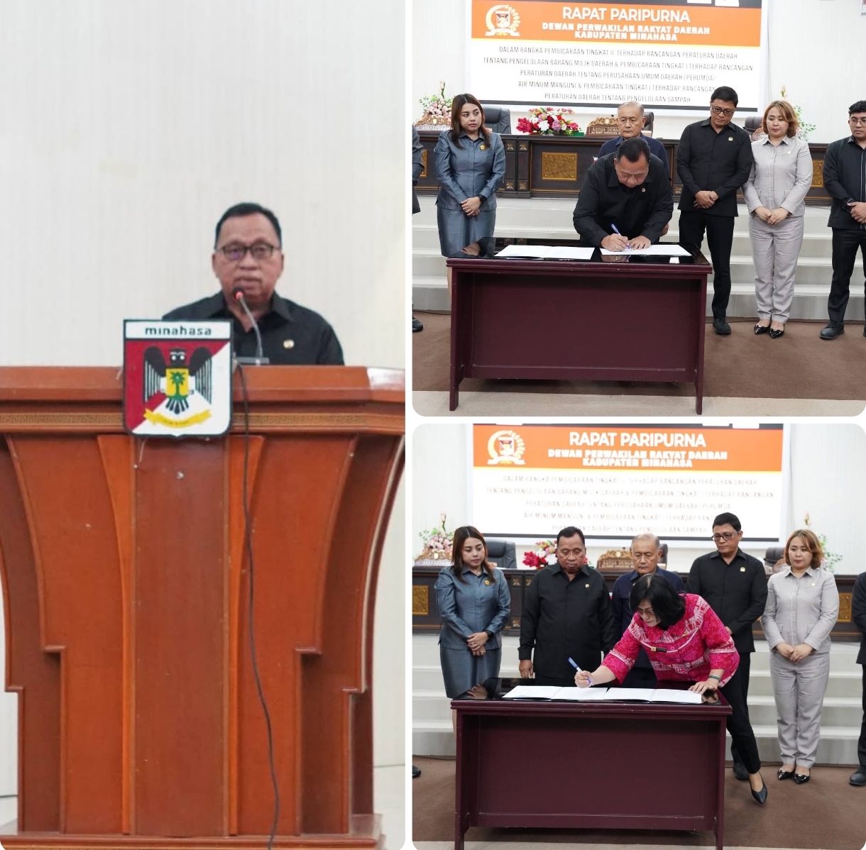 Dalam sambutannya, Bupati menyampaikan bahwa ketiga Ranperda tersebut merupakan bagian dari upaya Pemerintah Kabupaten Minahasa bersama DPRD dalam memperkuat tata kelola pemerintahan, meningkatkan kualitas pelayanan publik, serta mendorong pembangunan daerah yang berkelanjutan.