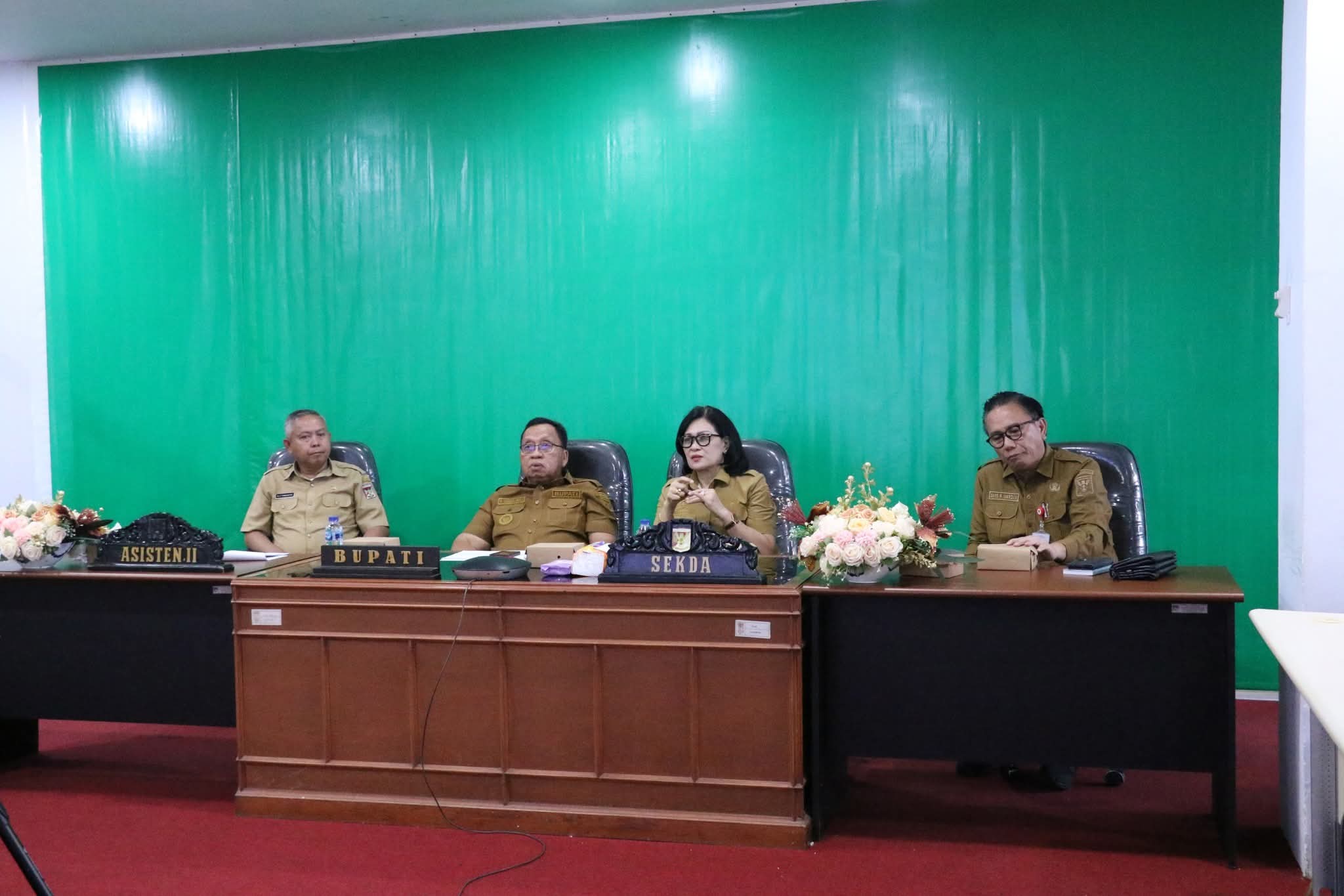 Wulansulutnews.com- Bupati Minahasa, Robby Dondokambey, S.Si, MAP, bersama Sekretaris Daerah Kabupaten Minahasa, Dr. Lynda D. Watania, MM, M.Si, mengikuti Rapat Koordinasi Pengendalian Inflasi Daerah yang dirangkaikan dengan pembahasan Evaluasi Dukungan Pemerintah Daerah dalam Program Nasional 3 Juta Rumah, Selasa (29/7/2025).
