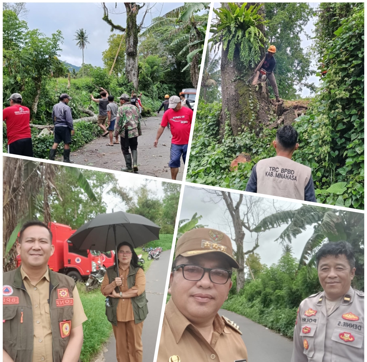 Kegiatan ini dipimpin langsung oleh Camat Kawangkoan Barat, Heppie Lumintang, SH, sebagai langkah preventif menghadapi cuaca ekstrem berupa hujan deras dan angin kencang yang berpotensi membahayakan keselamatan pengguna jalan dan wisatawan.