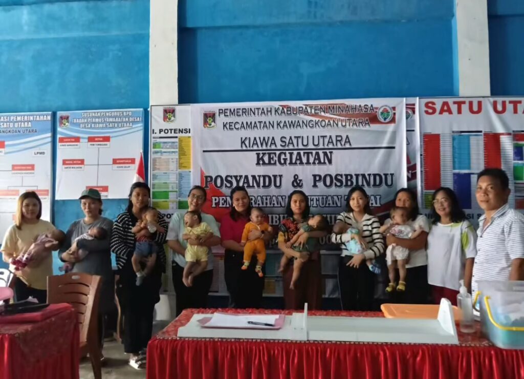 Wulansulutnews.com- Pemerintah Desa Kiawa Satu Utara, Kecamatan Kawangkoan Utara, Kabupaten Minahasa, melaksanakan kegiatan Posyandu dan Posbindu yang dirangkaikan dengan penyerahan bantuan tunai bagi ibu melahirkan pada Rabu (26/11/2025).