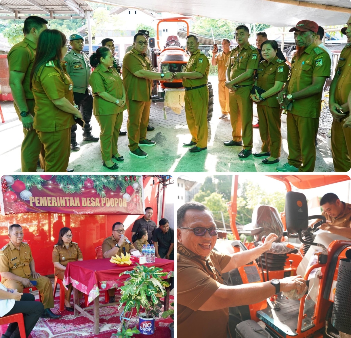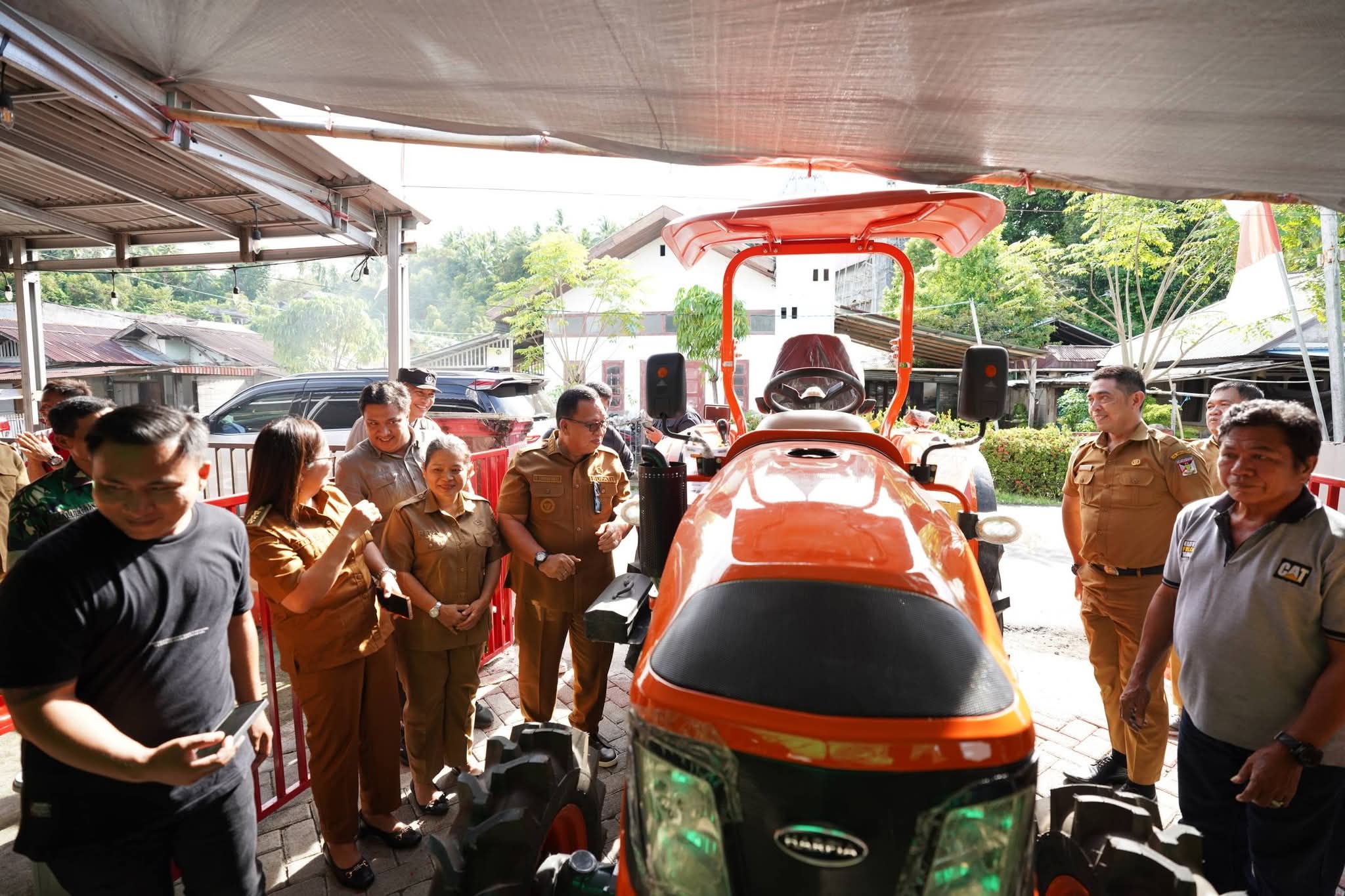 Penyerahan unit traktor diterima langsung oleh Hukum Tua Desa Poopoh Alexius Tombeg, disaksikan Camat Tombariri Yelly Soput serta jajaran Hukum Tua se-Kecamatan Tombariri. (pink)