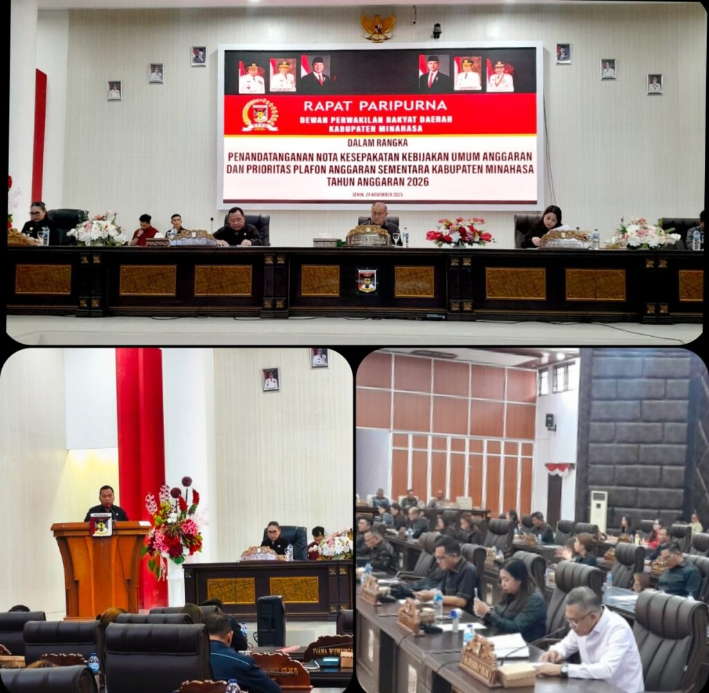 Wulansulutnews.com- Dewan Perwakilan Rakyat Daerah (DPRD) Kabupaten Minahasa bersama Pemerintah Kabupaten Minahasa secara resmi menandatangani Nota Kesepakatan Kebijakan Umum Anggaran (KUA) serta Prioritas dan Plafon Anggaran Sementara (PPAS) Tahun Anggaran 2026.
