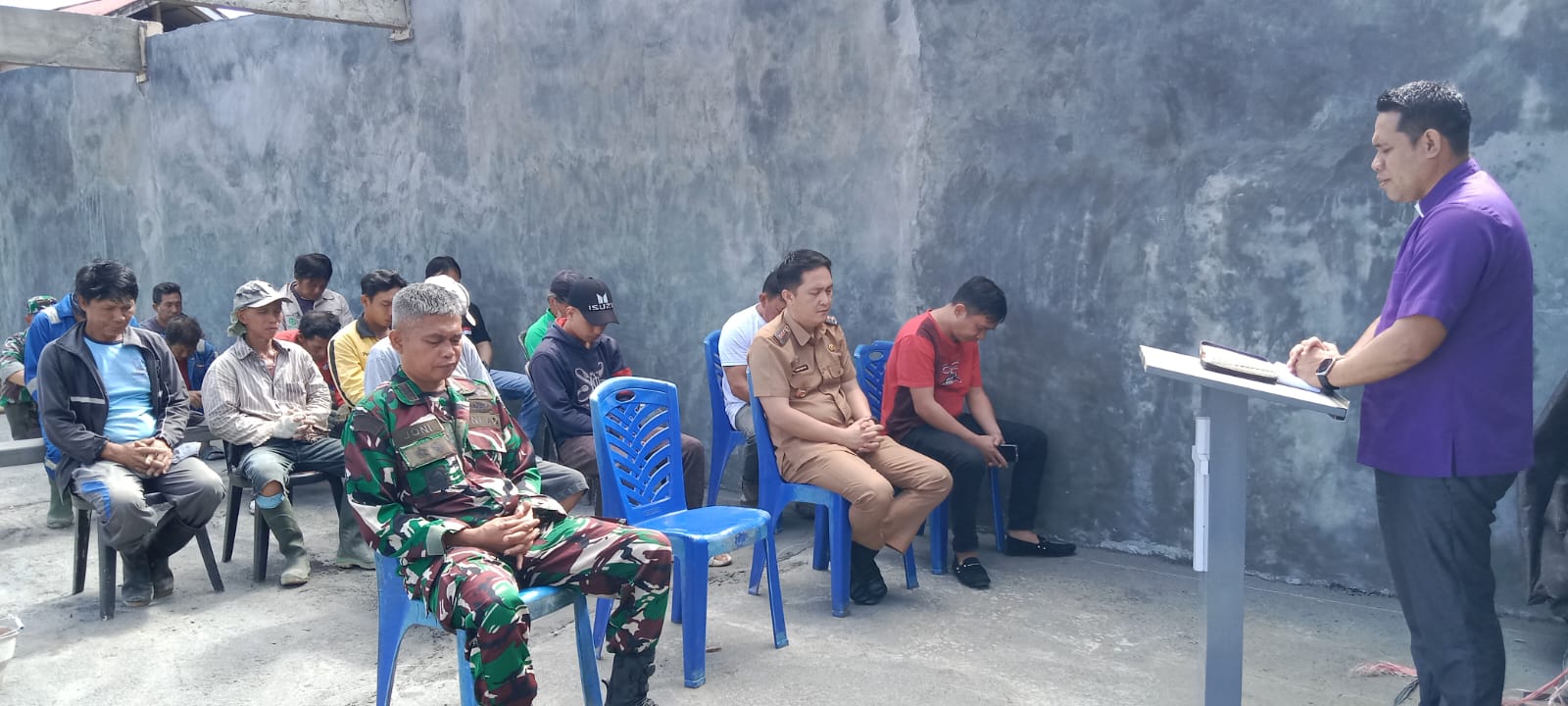 Kegiatan diawali dengan pelaksanaan ibadah percepatan pembangunan di lokasi KDKMP. Suasana berlangsung dengan penuh kebersamaan, yang mencerminkan sinergi antara pemerintah, aparat, dan masyarakat.