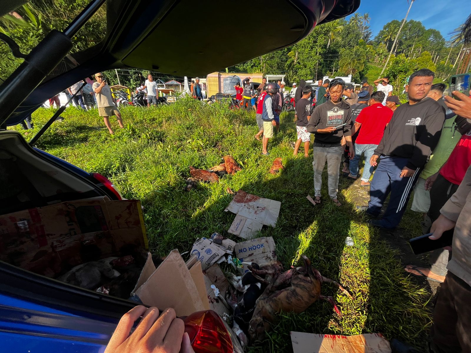 Informasi awal diterima Polsek Kakas sekitar pukul 06.30 Wita dari seorang warga setempat, Denly Ilato, yang melaporkan keberadaan kendaraan mencurigakan tersebut. Kecurigaan warga semakin kuat setelah diketahui di dalam mobil terdapat sejumlah hewan anjing dalam kondisi sudah tidak bernyawa.
