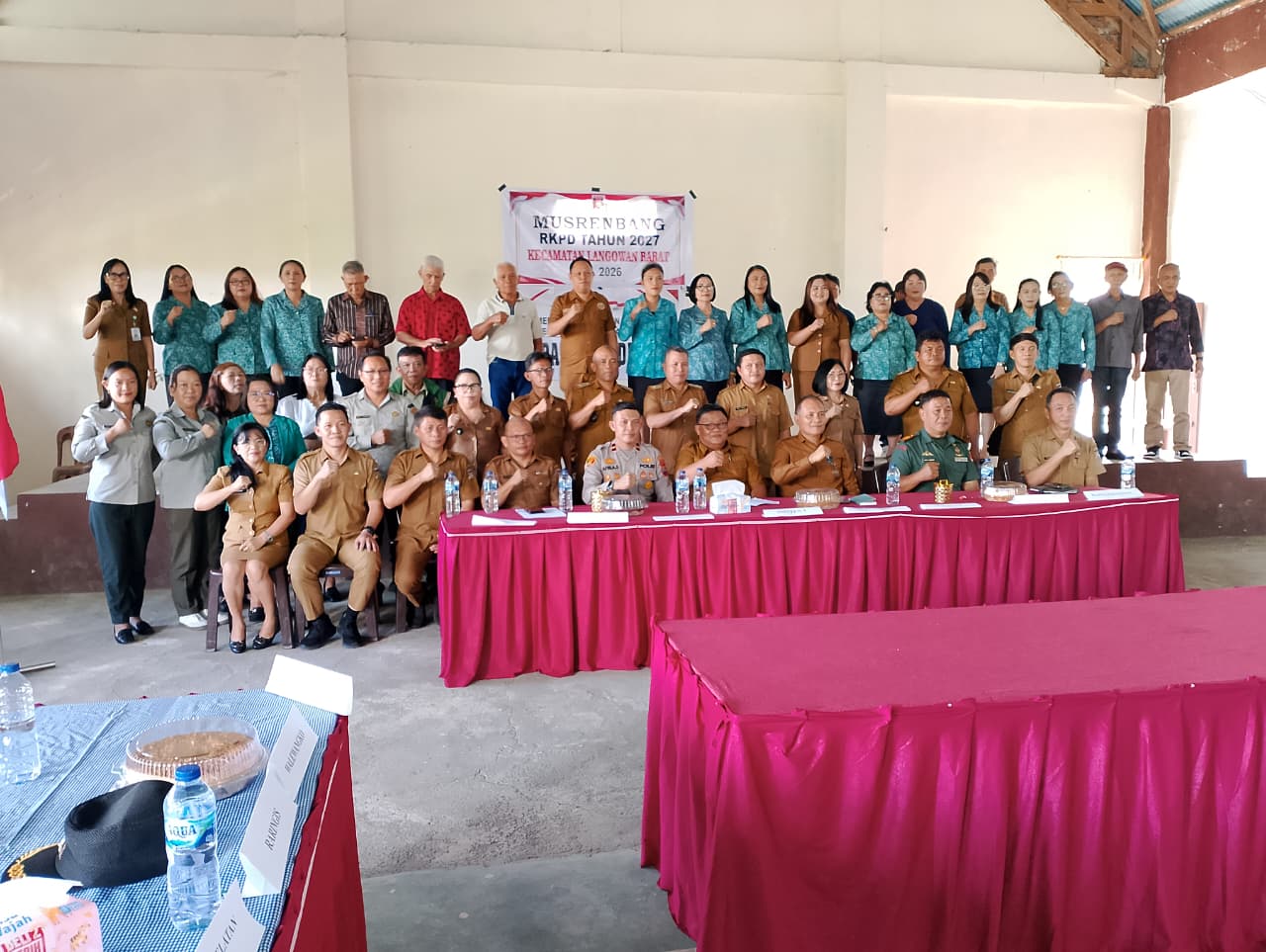 Turut hadir Staf Ahli Bidang Kemasyarakatan dan SDM Pemkab Minahasa Tommy Wuwungen, perwakilan Bapelitbangda Edwin Rumondor, SH, Kapolsek Langowan Barat IPDA Afri A. Saumana, S.Pd bersama anggota, para hukum tua se-Kecamatan Langowan Barat, serta jajaran TP PKK.