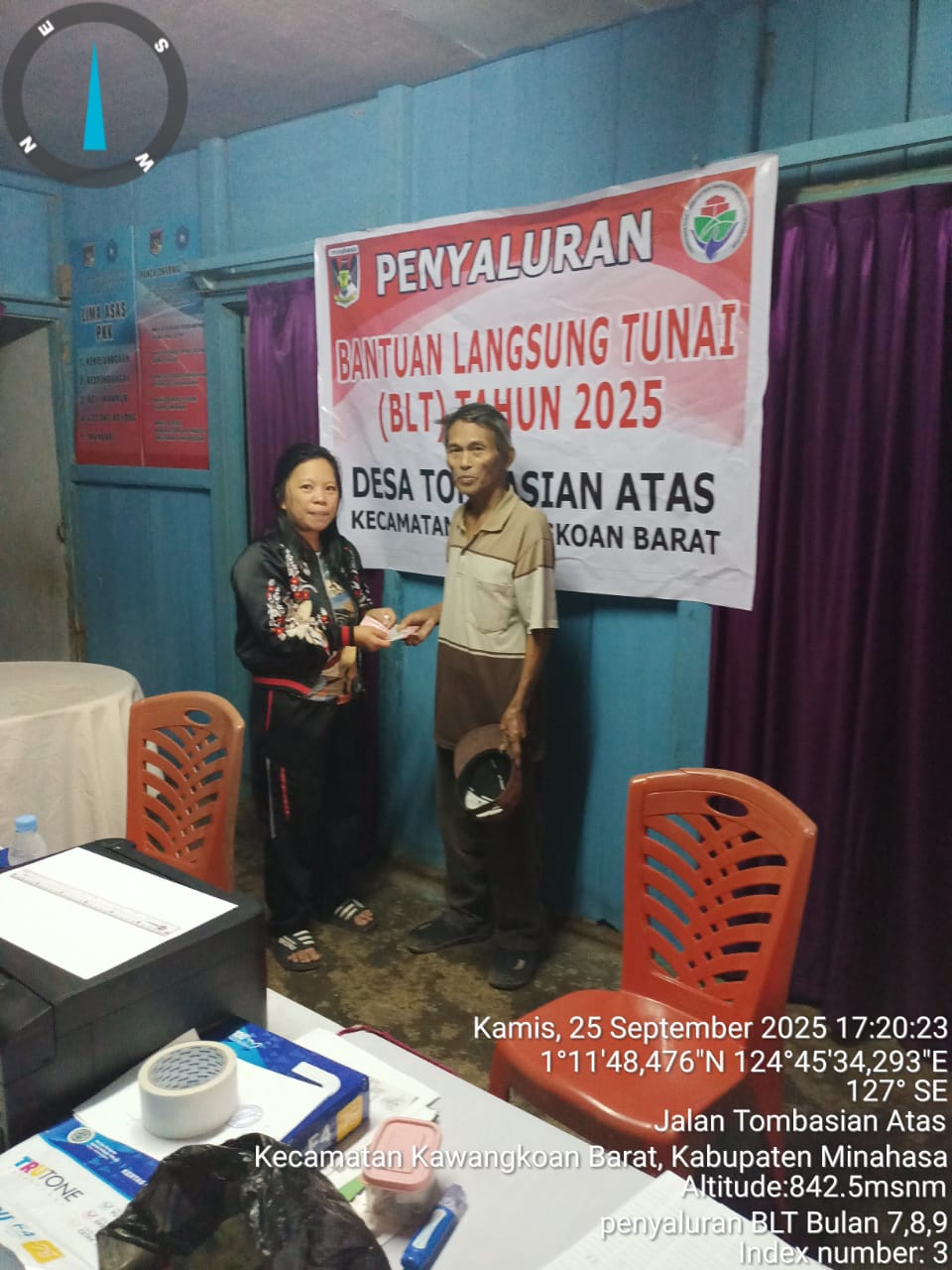 Wulansulutnews.com- Pemerintah Desa Tombasian Atas, Kecamatan Kawangkoan Barat, melaksanakan kegiatan penyaluran Bantuan Langsung Tunai (BLT) Dana Desa kepada masyarakat penerima manfaat pada Kamis (25/9/2025).