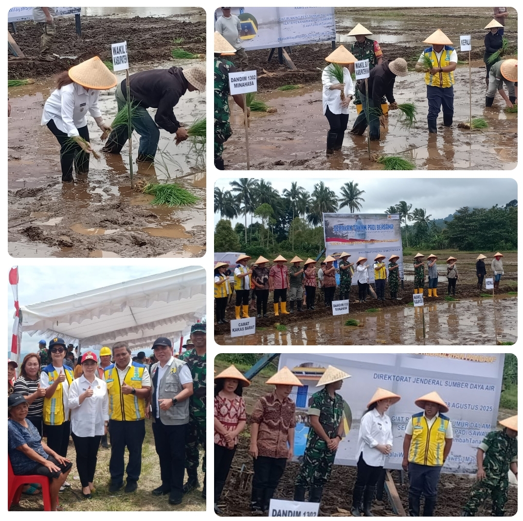 Wulansulutnews.com- Wakil Bupati Minahasa, Ibu Vanda Sarundajang, SS menghadiri kegiatan Gerakan Tanam Padi Bersama yang dilaksanakan oleh Kementerian Pekerjaan Umum Direktorat Jenderal Sumber Daya Air Balai Wilayah Sungai (BWSS) Sulawesi I Manado, bertempat di Desa Touliang, Kecamatan Kakas, Kamis (29/8/2025).