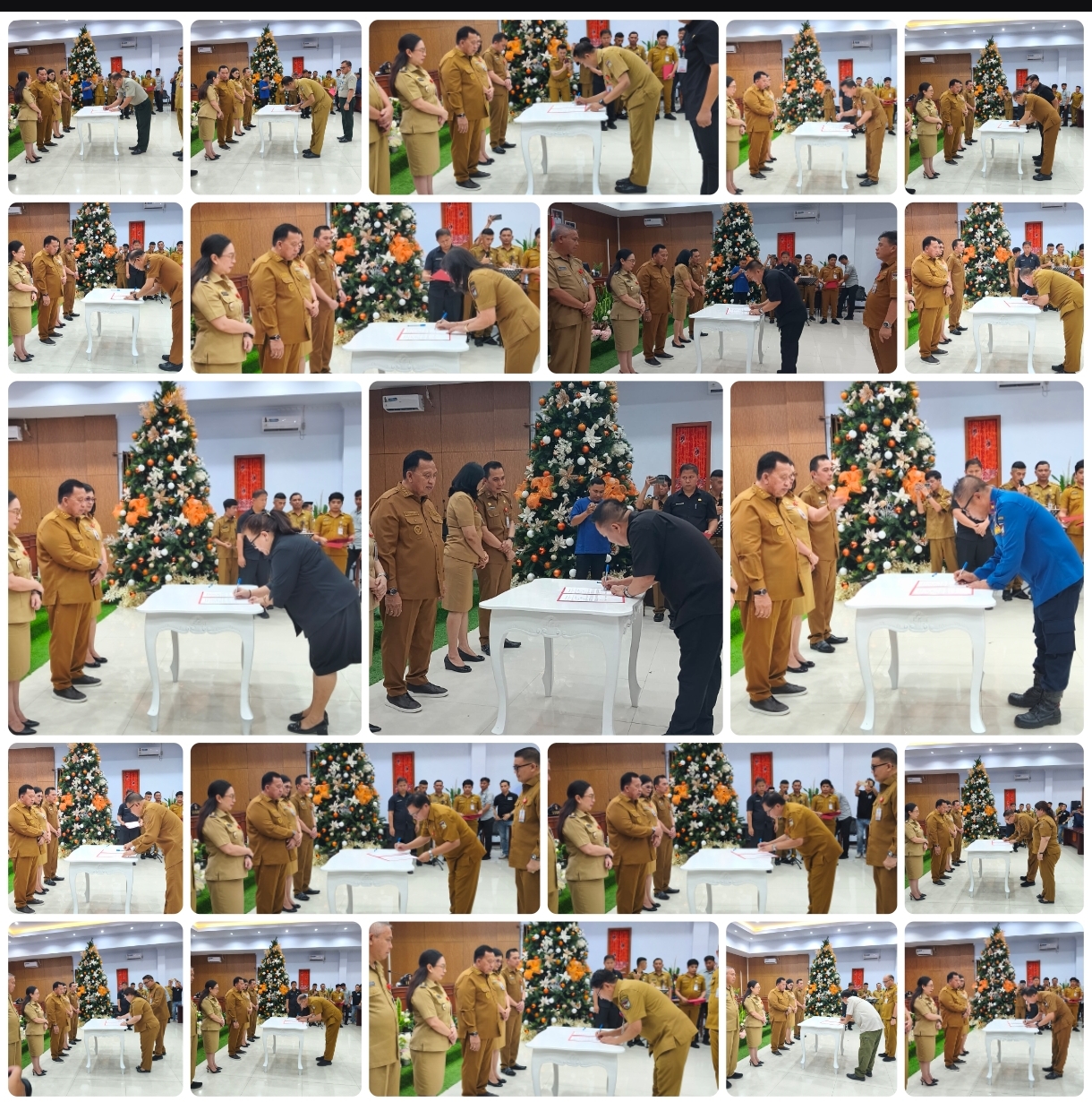 Kegiatan ini dihadiri oleh Bupati Minahasa Robby Dondokambey, S.Si., MAP, Wakil Bupati Minahasa Vanda Sarundajang, S.S., Sekretaris Daerah Kabupaten Minahasa Dr. Lynda D. Watania, MM., M.Si., para pejabat Pimpinan Tinggi Pratama yang baru maupun lama, serta jajaran Pemerintah Kabupaten Minahasa. (pink)