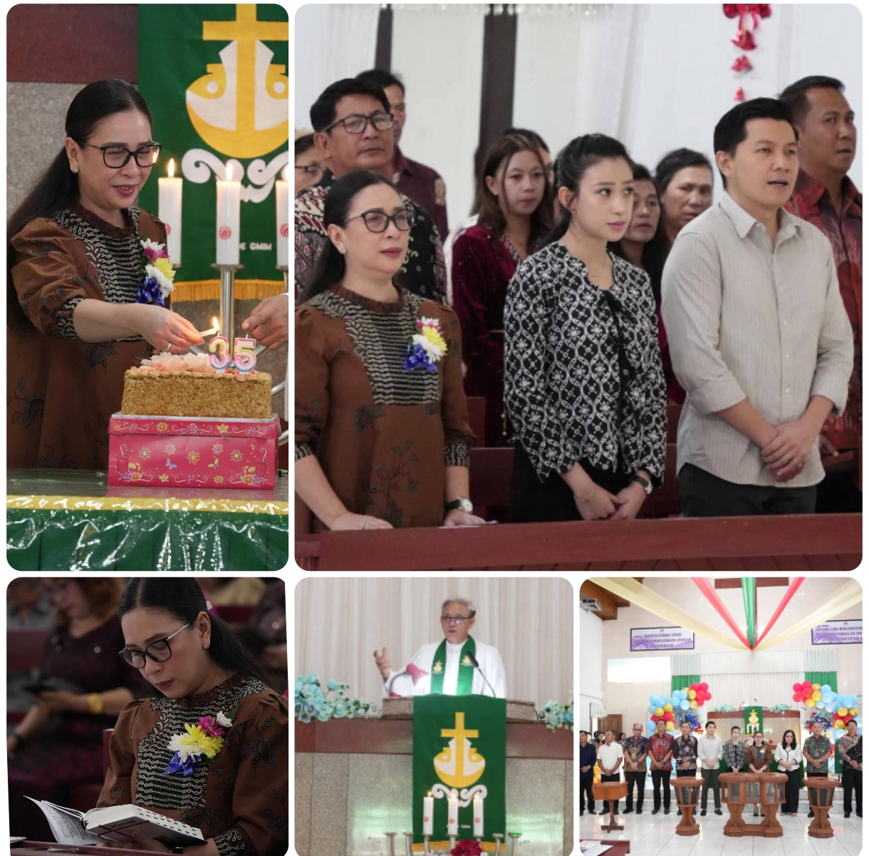 Ibadah dipimpin oleh Wakil Ketua Bidang Ajaran dan Tata Gereja Sinode GMIM, Pdt. Jani Ch. Rende, M.Th. Suasana ibadah berlangsung khidmat sebagai ungkapan syukur jemaat atas penyertaan Tuhan selama 35 tahun perjalanan pelayanan gereja.