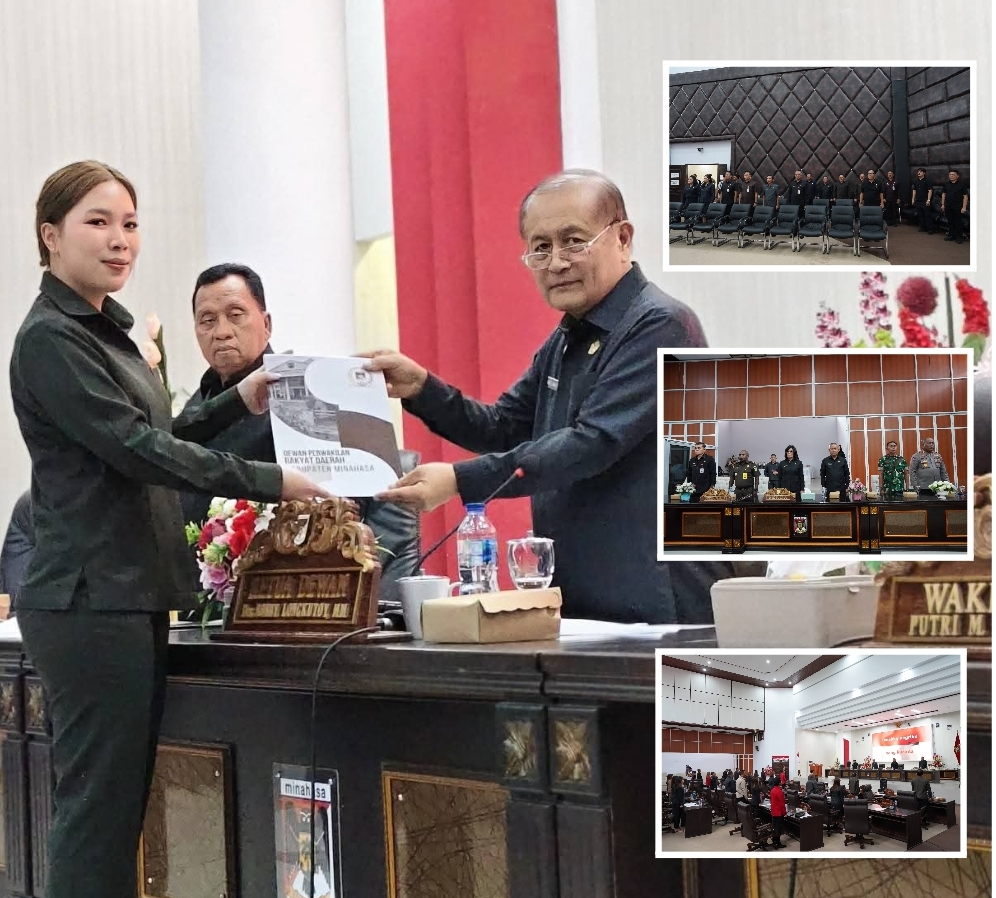 Rapat yang berlangsung di Ruang Sidang DPRD Kabupaten Minahasa, Kamis (30/4/2026), dipimpin Ketua DPRD Drs. Robby Longkutoy, MM, didampingi Wakil Ketua Putri M. Pontororing, SS dan Adrie Kamasi, SH, MH, serta dihadiri Sekretaris Daerah Dr. Lynda D. Watania, MM, M.Si, Forkopimda, jajaran Pemkab Minahasa, tim ahli DPRD, dan instansi vertikal.