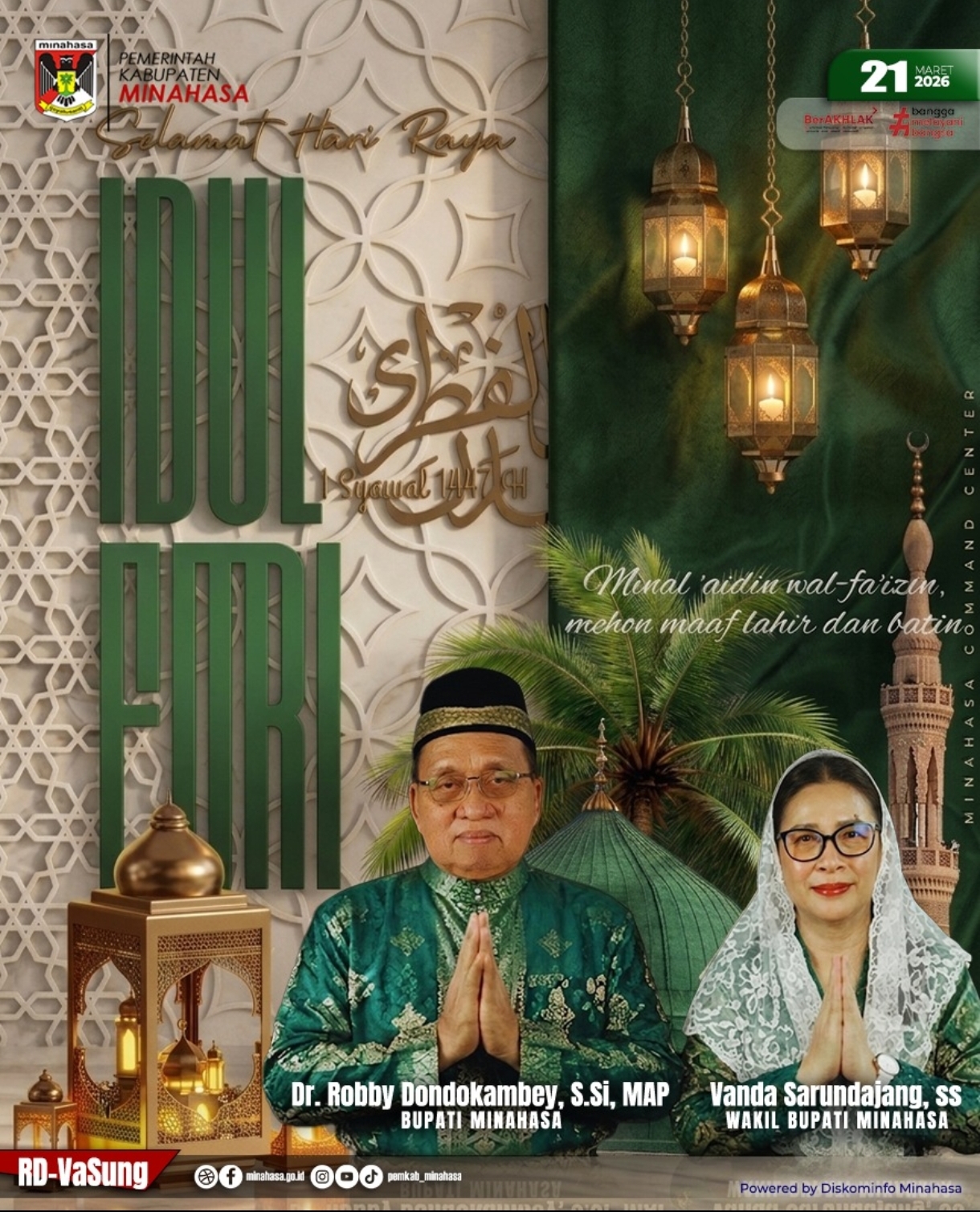 Pesan ini disampaikan oleh Bupati Minahasa, Dr. Robby Dondokambey, S.Si., MAP., dan Wakil Bupati, Vanda Sarundajang, SS., yang menekankan bahwa hari raya Idul Fitri adalah momentum sakral untuk menjaga kesucian hati dan memperkuat tali persaudaraan.