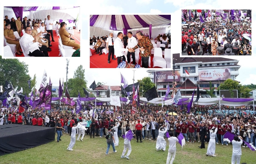 Wulansulutnews.com– Dalam suasana penuh hikmat dan sukacita Paskah, Bupati Minahasa, Dr. Robby Dondokambey, M.M., M.A.P., menghadiri Ibadah Agung Selebrasi Paskah yang dirangkaikan dengan Puncak Perayaan 100 Tahun (Satu Abad) Pemuda GMIM, yang digelar di Lapangan Sparta Tikala, Senin (6/4/2026).