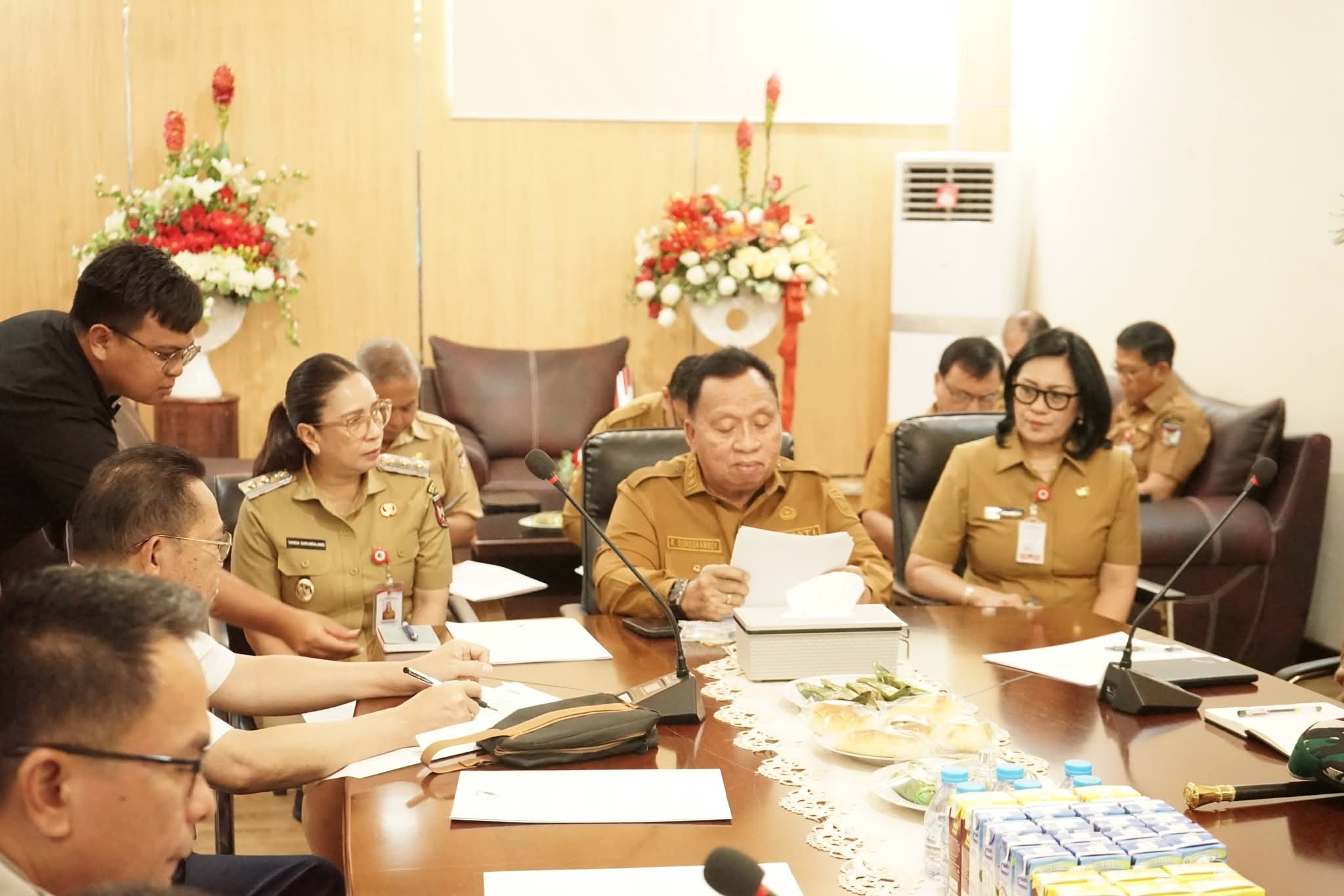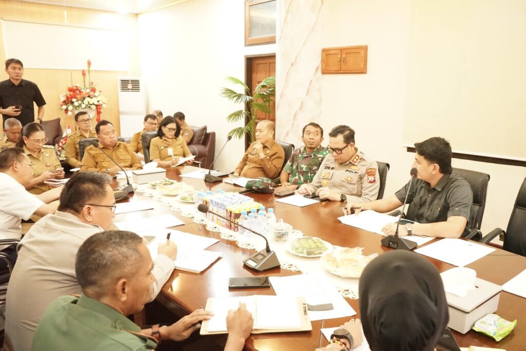 Wulansulutnews.com- Bupati Minahasa, Robby Dondokambey, S.Si., MAP., bersama Wakil Bupati Vanda Sarundajang, S.S., memimpin rapat Forum Koordinasi Pimpinan Daerah (Forkopimda) di ruang kerja Bupati Minahasa, Selasa (9/9/2025).