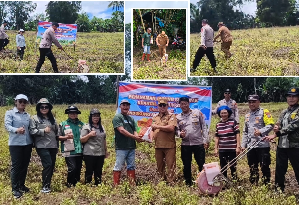 Wulansulutnews.com– Dalam upaya mendukung program swasembada jagung nasional, jajaran Polsek Kawangkoan bersama pemerintah Desa dan kecamatan kawangkoan barat serta penyuluh pertanian dan Kelompok Tani Diakonia Tombasian Atas, melaksanakan kegiatan penanaman jagung Kuartal I Tahun 2026, Senin (9/3/2026).