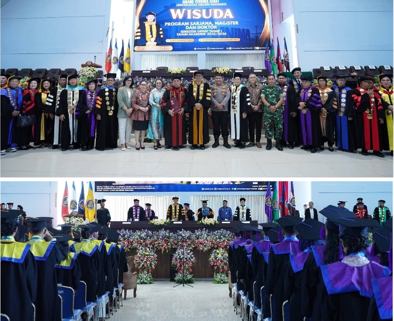Wulansulutnews.com- Kepala Staf Kodim (Kasdim) 1302/Minahasa, Mayor Inf Daeng Pasaka, S.E., mewakili Dandim 1302/Minahasa Letkol Inf Bonaventura Ageng F.S., menghadiri Sidang Terbuka Senat Universitas Negeri Manado (UNIMA) dalam rangka Wisuda Tahap I Tahun Akademik 2025/2026 yang dirangkaikan dengan Dies Natalis ke-70. Kamis (26/3/2026).