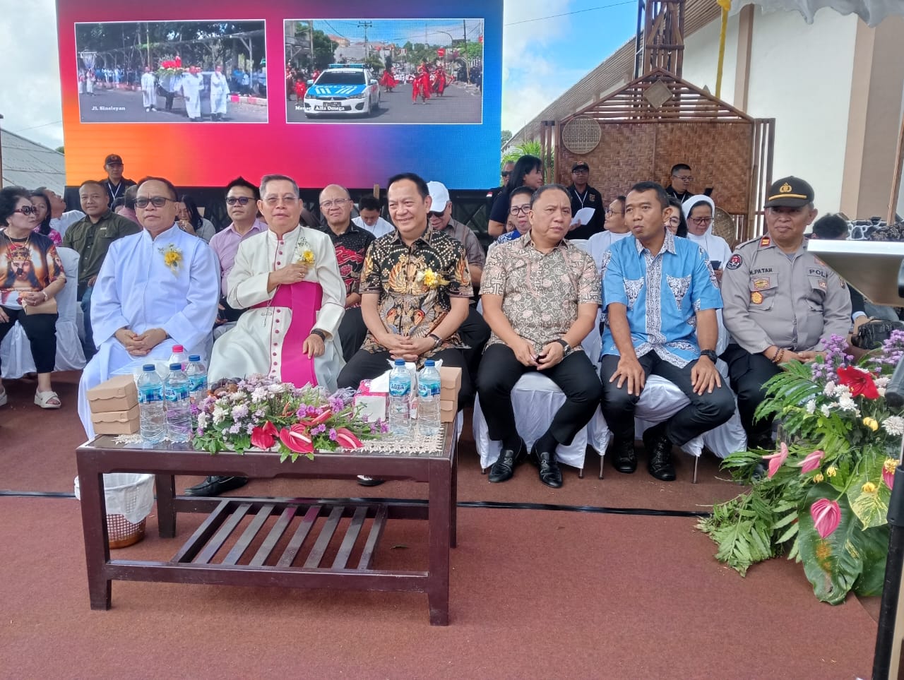 Kegiatan akbar yang diikuti sekitar 1.000 umat Katolik ini turut dihadiri Komandan Kodim 1302/Minahasa Letkol Inf Bonaventura Ageng F. S., bersama Ketua Persit KCK Cabang XIV Dim 1302/Minahasa Ny. drg. Basaria Manurung, Sp.BM.