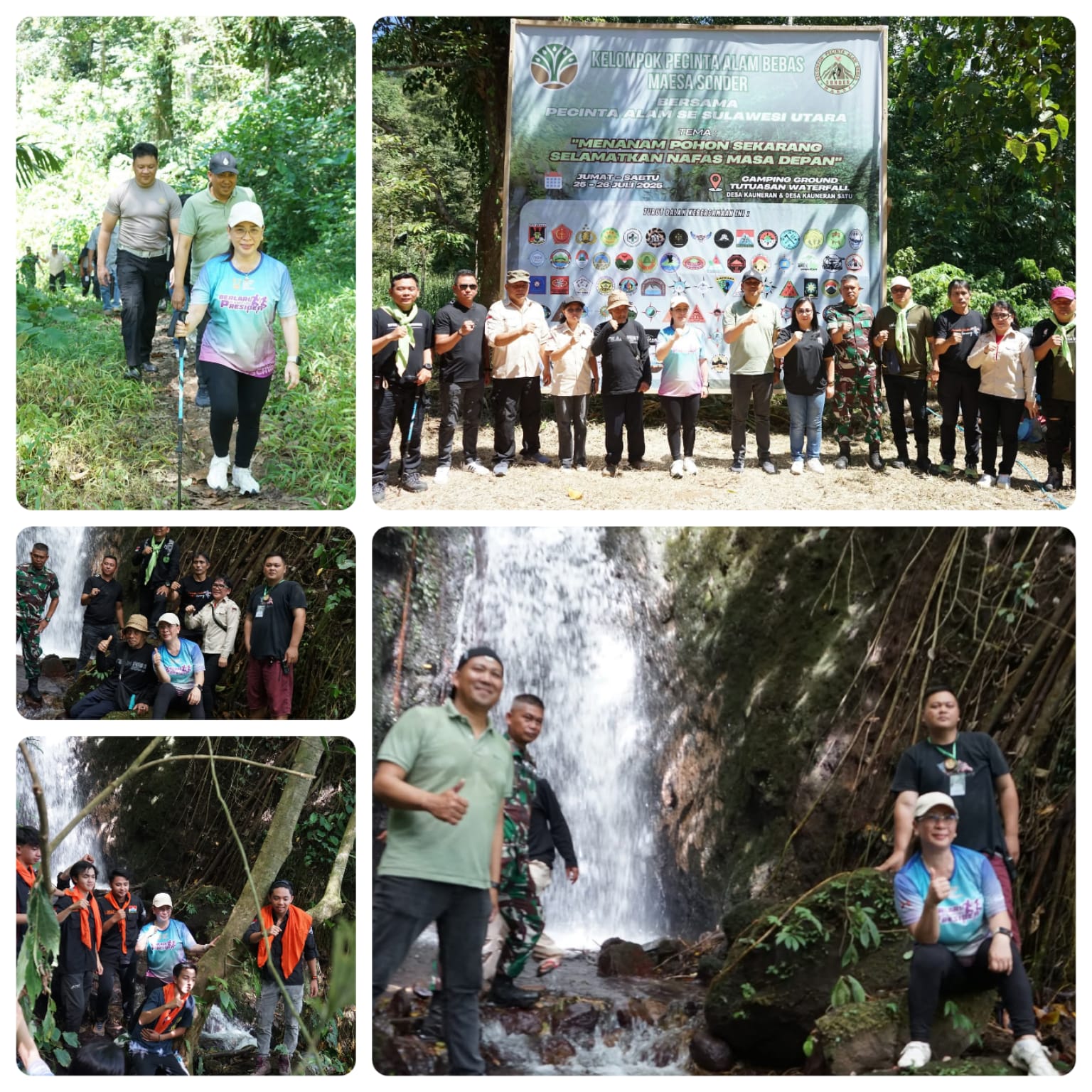 Kegiatan bertema “Menanam Pohon Sekarang, Selamatkan Nafas Masa Depan” ini dilaksanakan pada Jumat–Sabtu, 25–26 Juli 2025, di kawasan wisata alam Tutuasan Waterfall, Desa Kauneran raya.