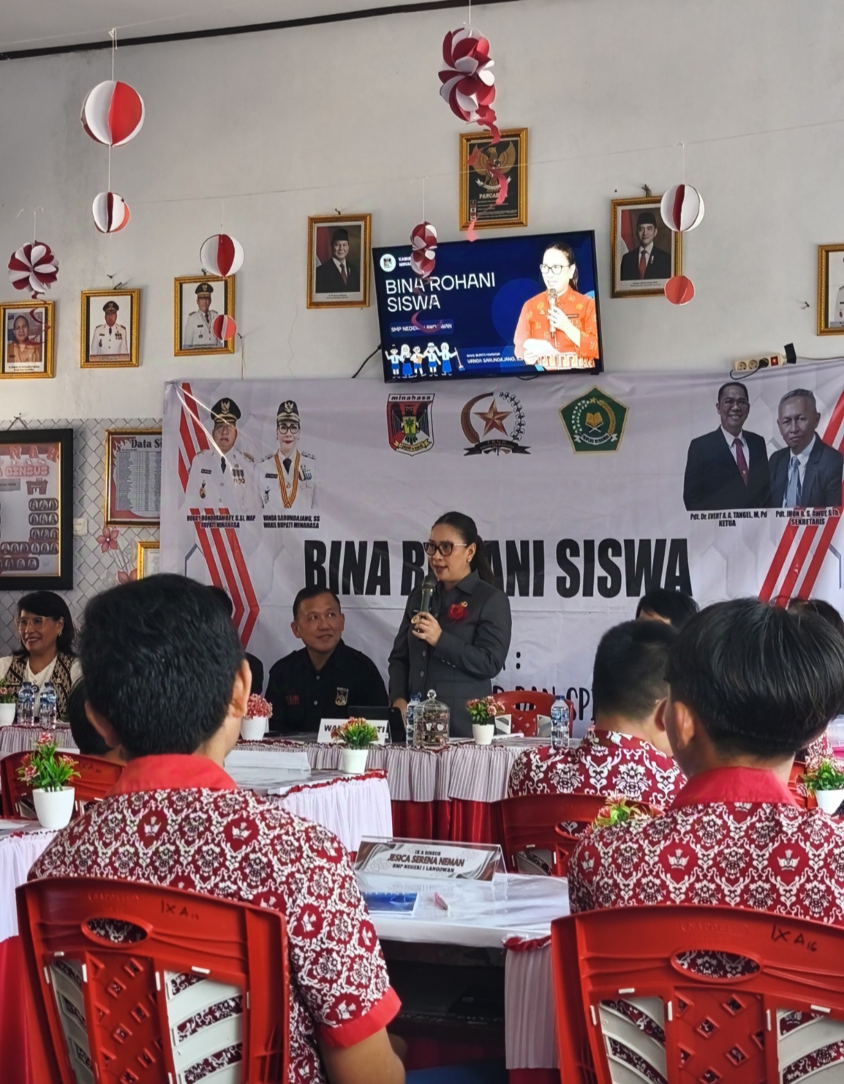 Wulansulutnews.com- Wakil Bupati Minahasa, Vanda Sarundajang, SS, membuka kegiatan Sosialisasi Bina Rohani Siswa yang dilaksanakan di SMP Negeri 1 Langowan, Kamis (11/9/2025).